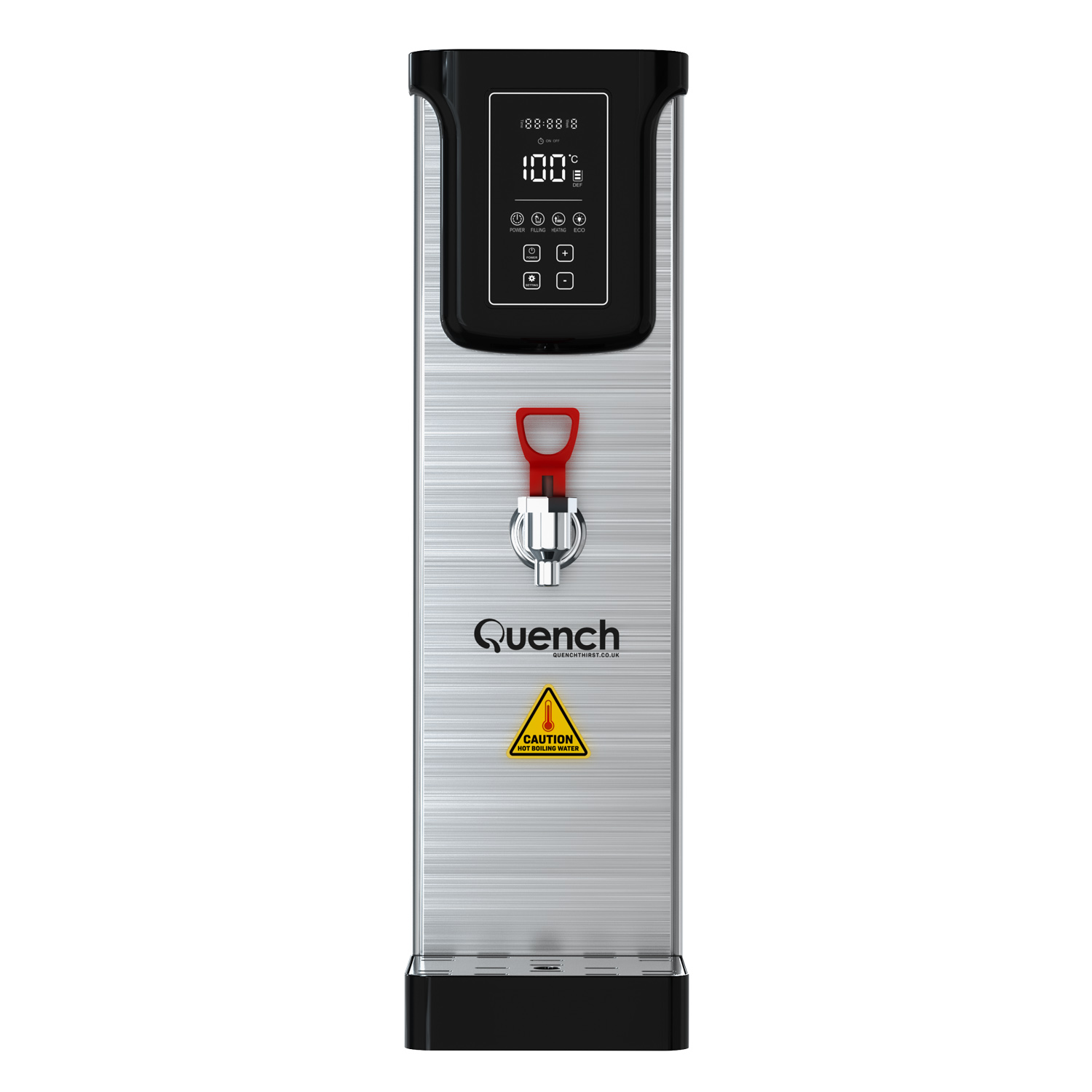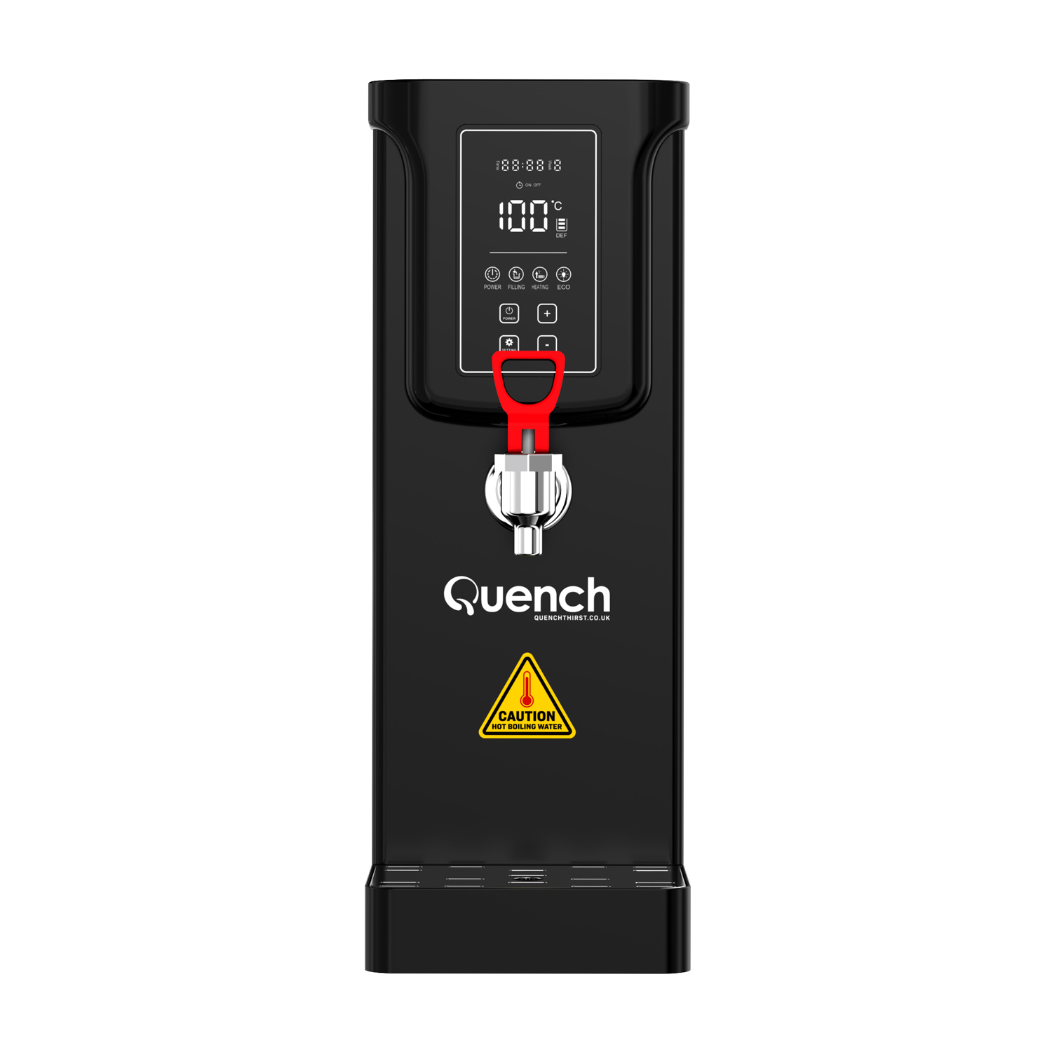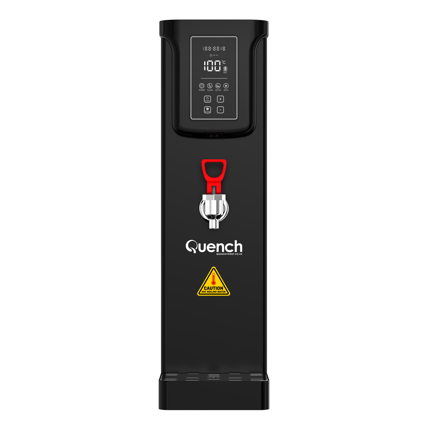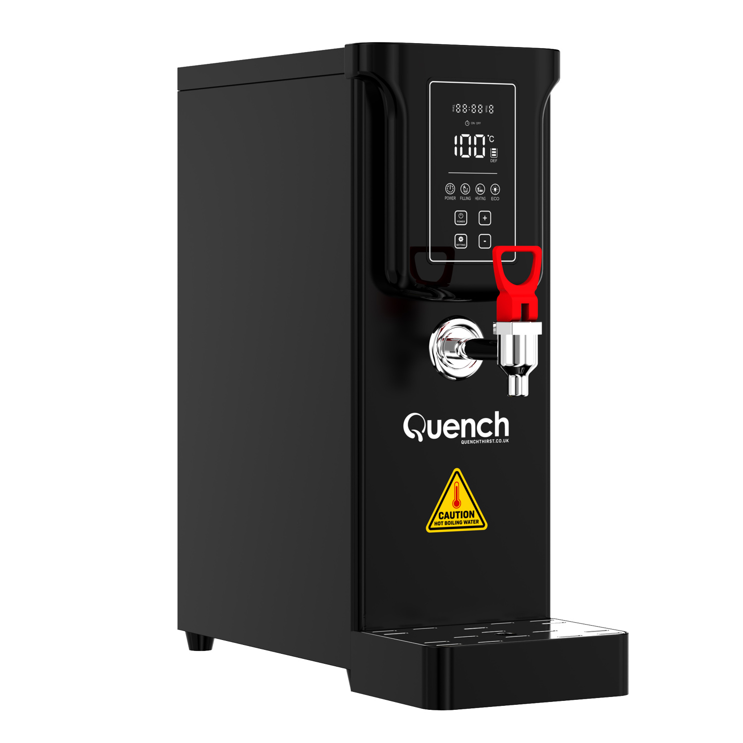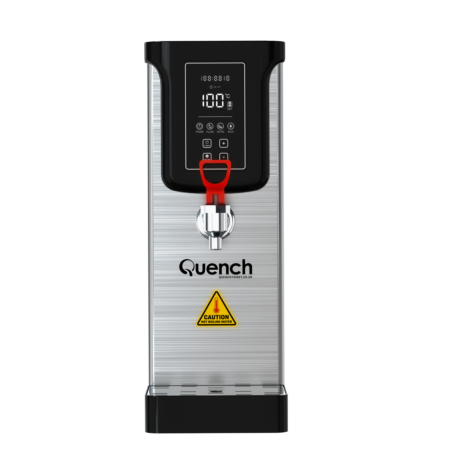 As well as saving time and money, the addition of one of these hot water kettles will save considerable amounts of energy and associated costs vs filling and re-boiling a kettle each time (which costs 6p for every boil plus your water costs) When the Quench is not in use, it has an eco-mode that keeps the water at temperature at a constant temperature to enhance your energy savings. We have also developed a timer function for further energy savings, where you can program the boiler to be on based around your opening or office hours. This is pivotal as often water boilers can be left on overnight, wasting energy when not in use and the premises is closed.