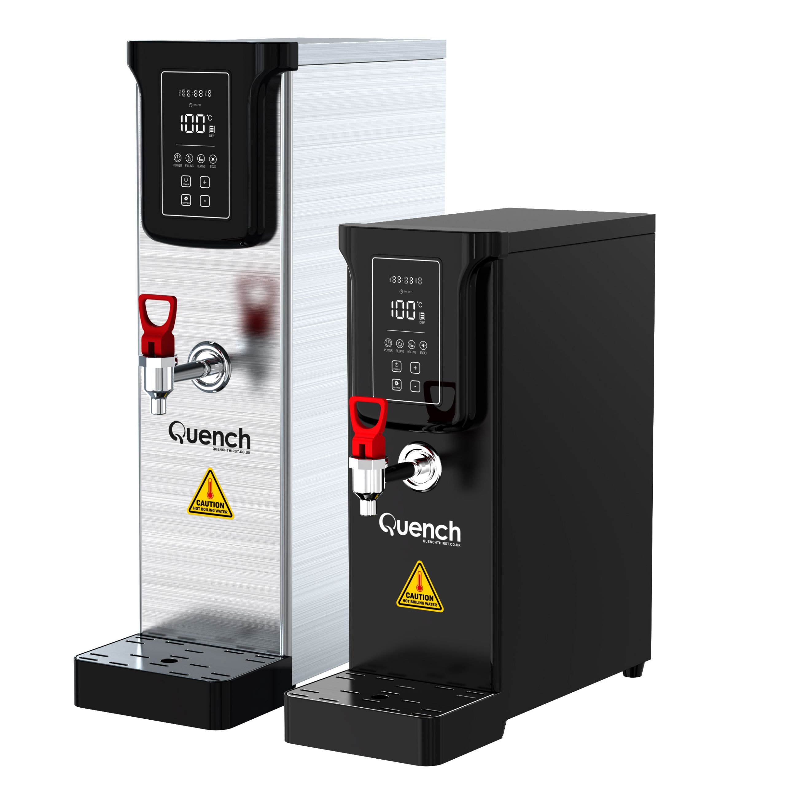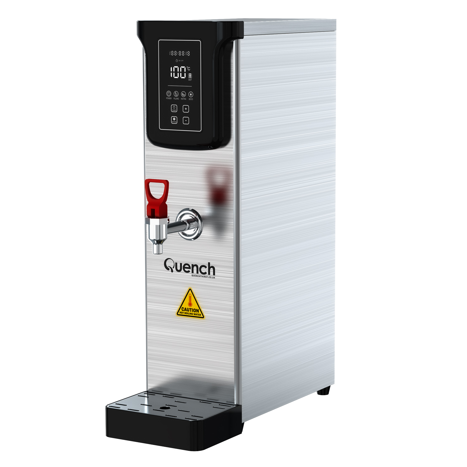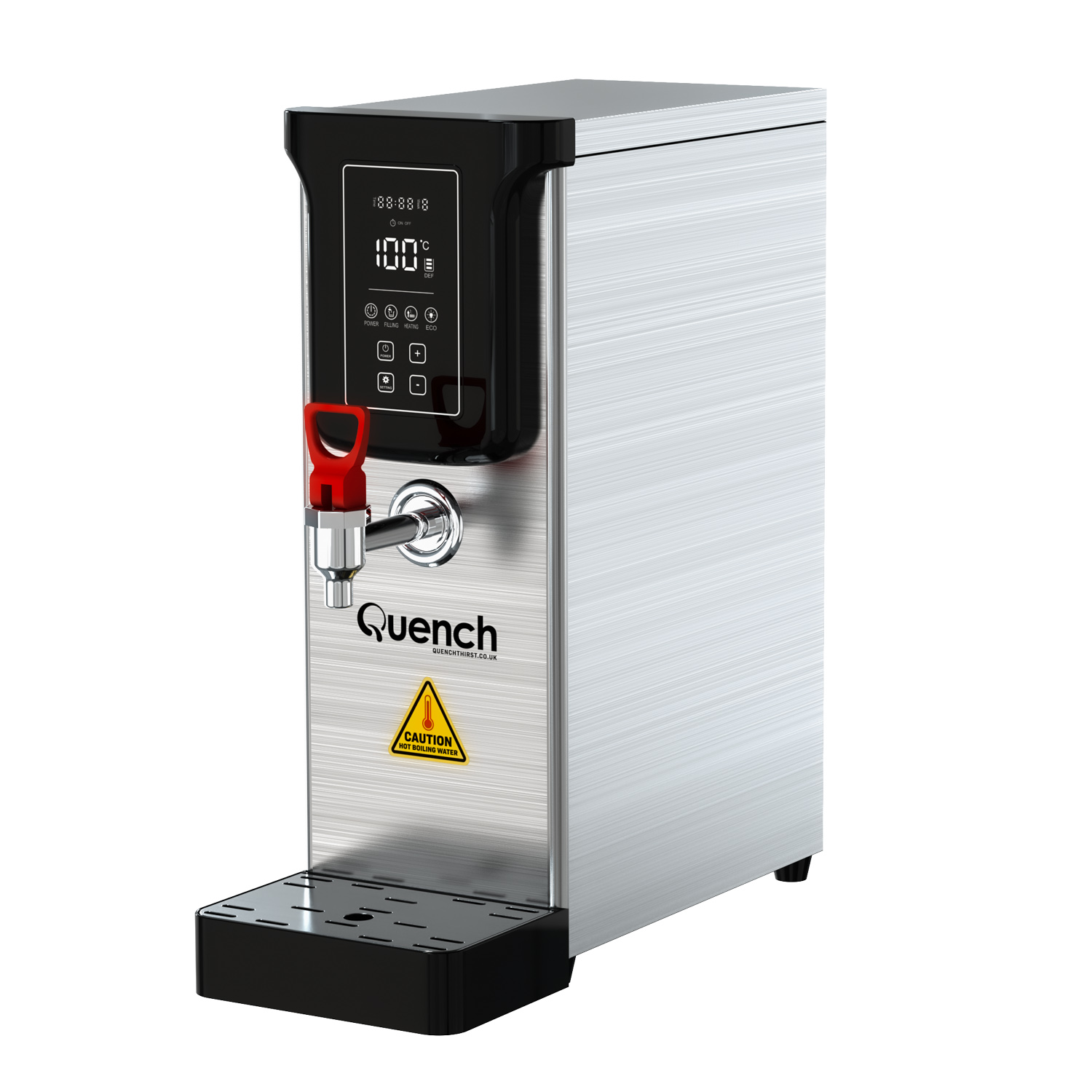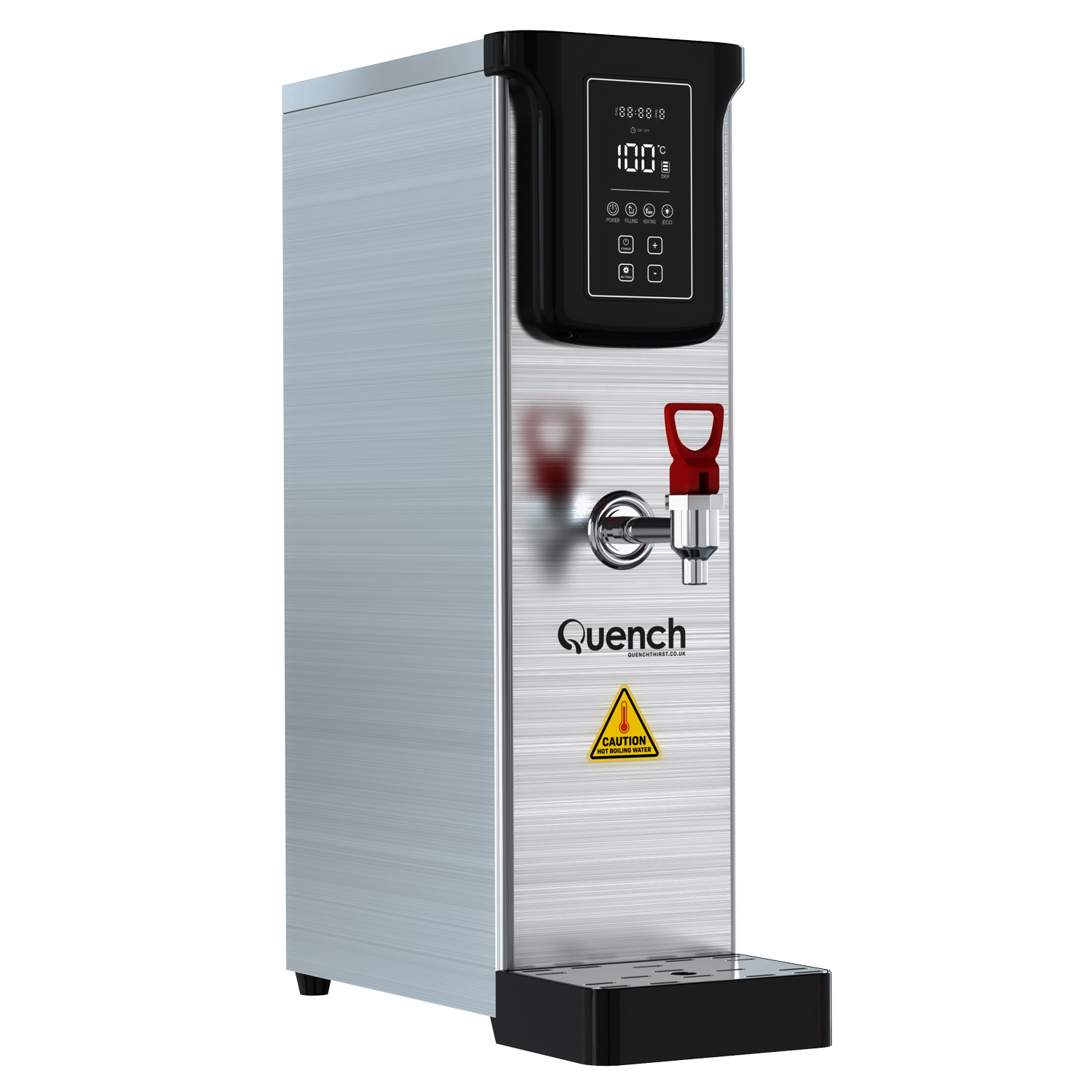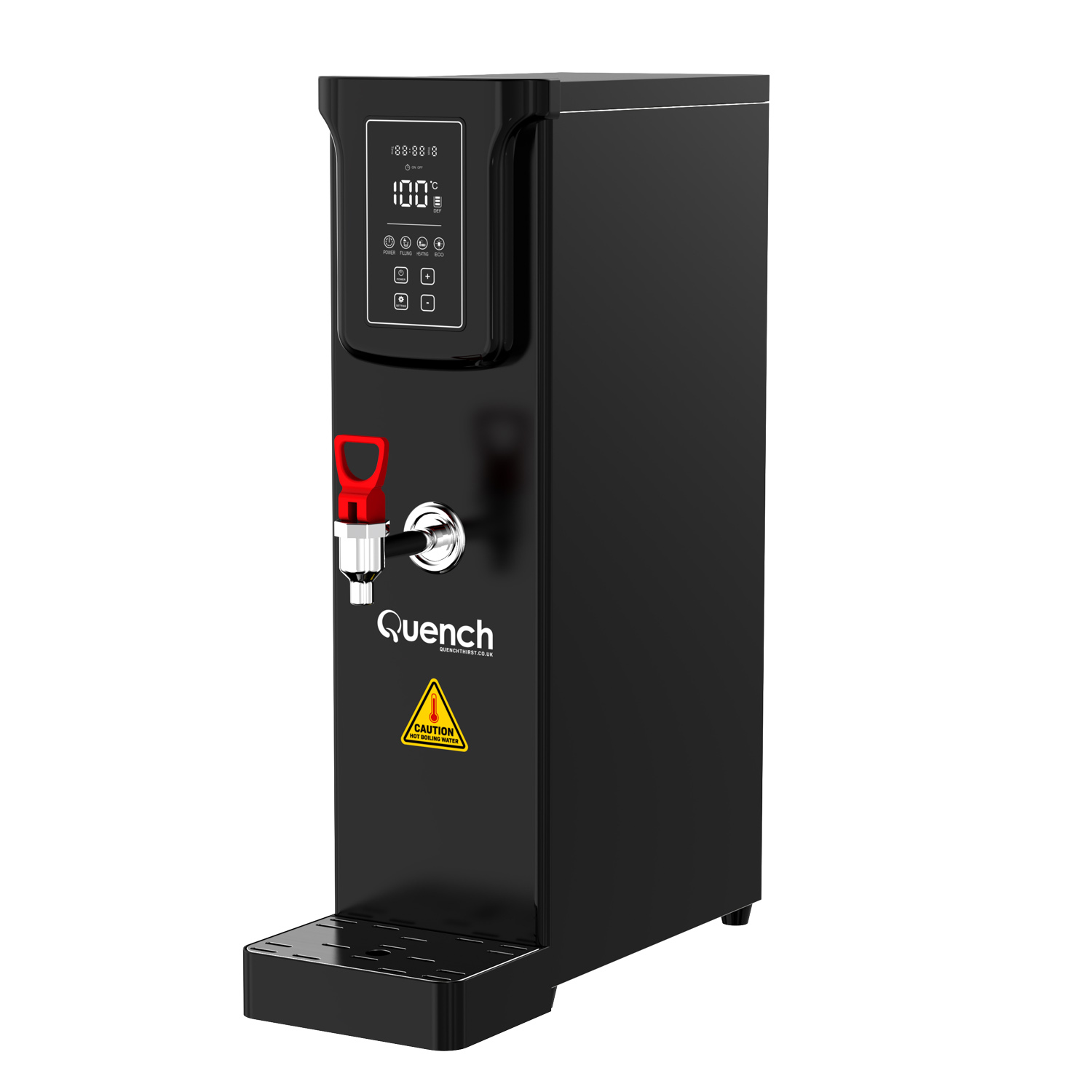 As well as saving time and money, the addition of one of these hot water kettles will save considerable amounts of energy and associated costs vs filling and re-boiling a kettle each time (which costs 6p for every boil plus your water costs) When the Quench is not in use, it has an eco-mode that keeps the water at temperature at a constant temperature to enhance your energy savings. We have also developed a timer function for further energy savings, where you can program the boiler to be on based around your opening or office hours. This is pivotal as often water boilers can be left on overnight, wasting energy when not in use and the premises is closed.