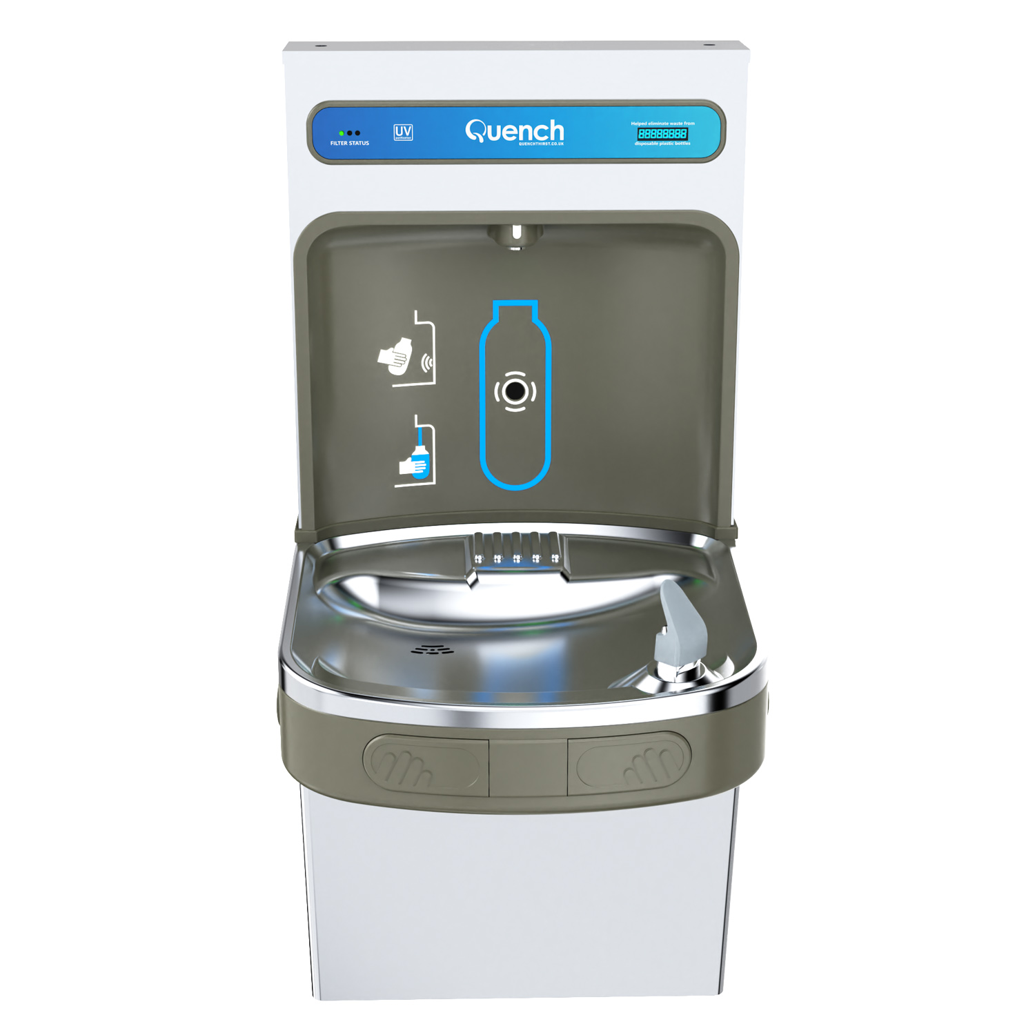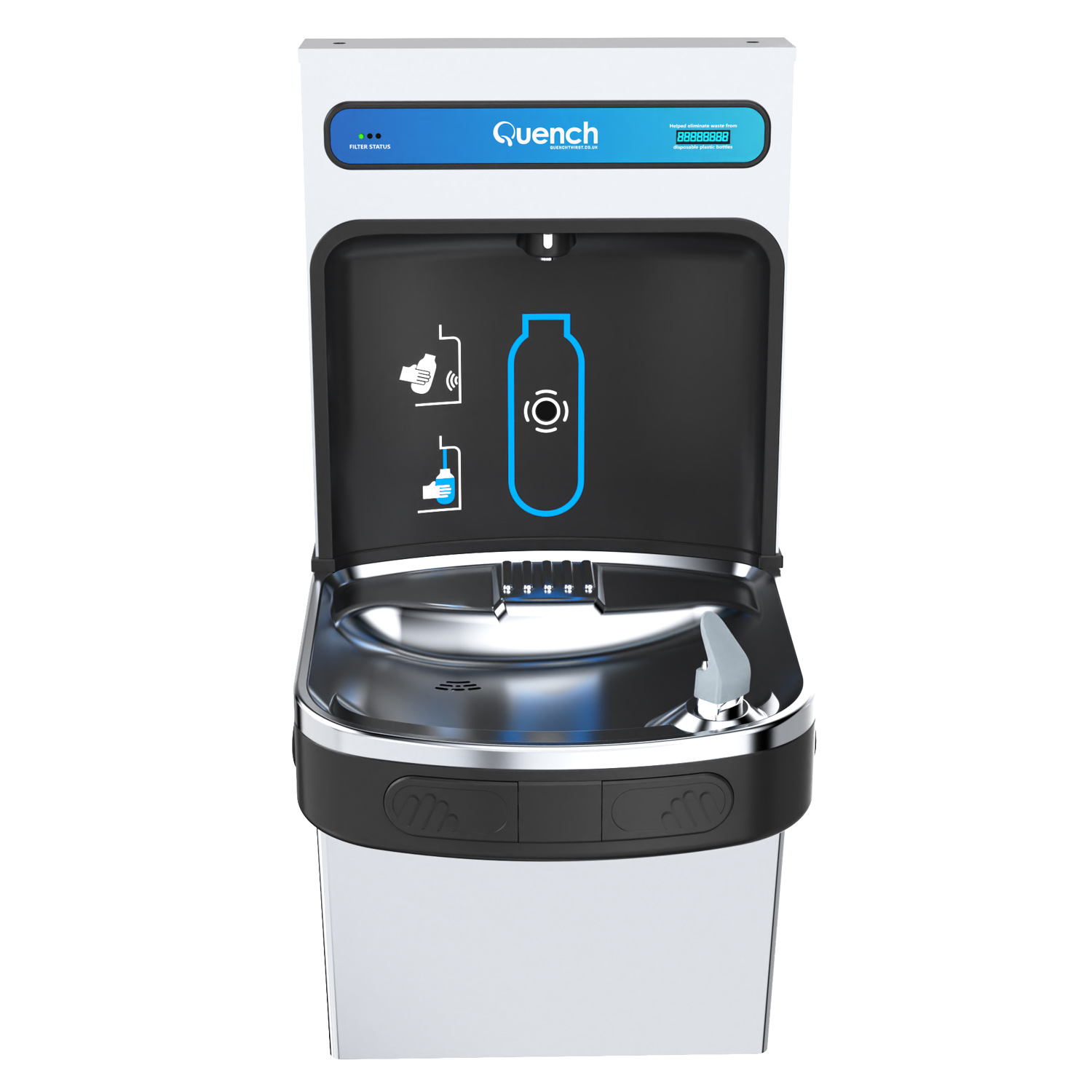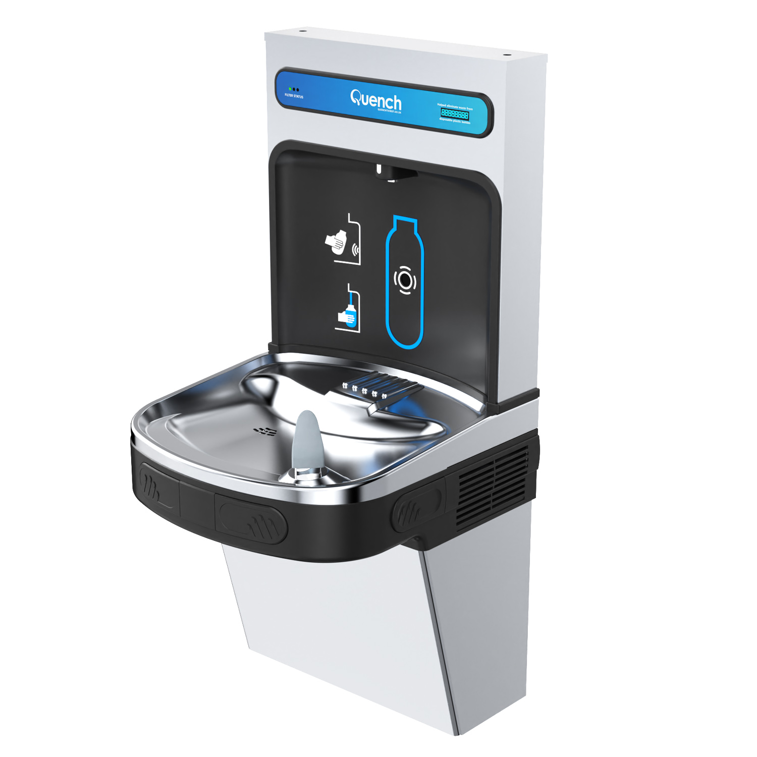 Elevate your hydration experience with the Quench Bottle Filling Station and Drinking Fountain, designed to deliver clean, refreshing water in high-traffic indoor environments. This versatile, dual-purpose unit combines a hands-free bottle filler with a traditional drinking fountain, making it an ideal solution for schools, offices, gyms, and public facilities.